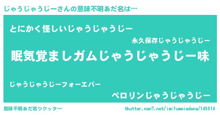 | 男性向けラノベタイトル風あだ名 | 『おまえをオタクにしてやるから、俺をじゃうじゃうじーにしてくれ! 』 |