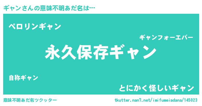 | 男性向けラノベタイトル風あだ名 | 『ギャンという概念が存在しない退屈な世界 』 |