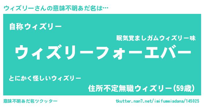 | ポケモン風あだ名 | 『ウィゴンZ』『ウィズダネ』 |