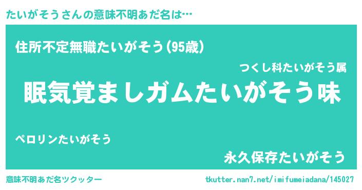 | ヘコむあだ名 | 『たいがそう(爆)』『たいっふぃ~』 |