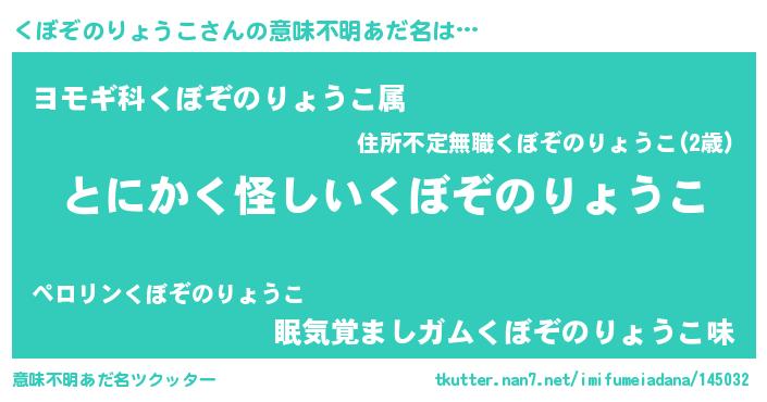 | 男性向けラノベタイトル風あだ名 | 『くぼぞのりょうこの嫁は女の子じゃないと思った?』 |