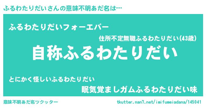 | 男性向けラノベタイトル風あだ名 | 『うちのふるわたりだいが世界を掌握している!』 |