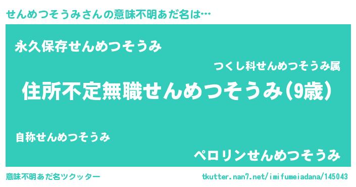 | ヘコむあだ名 | 『せんめつそうみ(笑)』『せんにー』 |