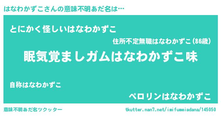 | ポケモン風あだ名 | 『ハックウザ』『ヒハナワカズコ』 |