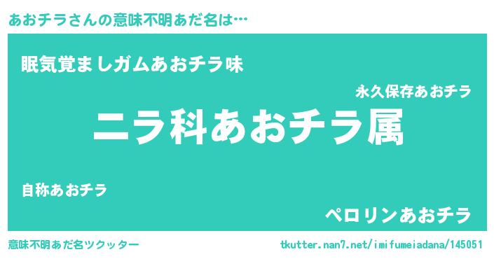 | 欧米人風あだ名 | 『アンジェラ・あおチラ』 |