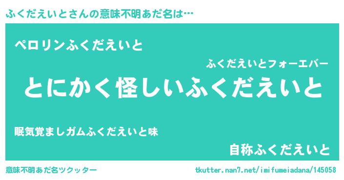 | 男性向けラノベタイトル風あだ名 | 『ふくだえいとの嫁は女の子じゃないと思った?』 |
