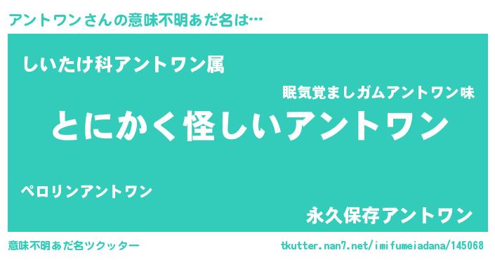| 胡散臭い通販商品みたいなあだ名 | 『全米が絶賛したサプリメント…その名も「アントワン」』 |