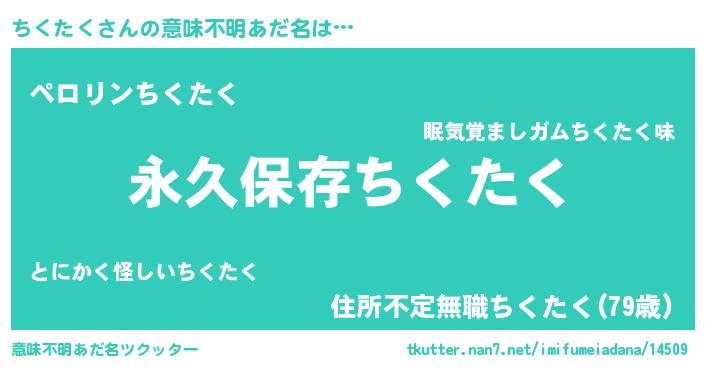 | ヘコむあだ名 | 『ちくたく(震え声)』『ちくふぇ~』 |
