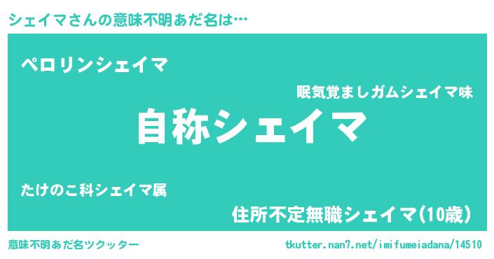 | 男性向けラノベタイトル風あだ名 | 『魔法科高校のシェイマ』 |
