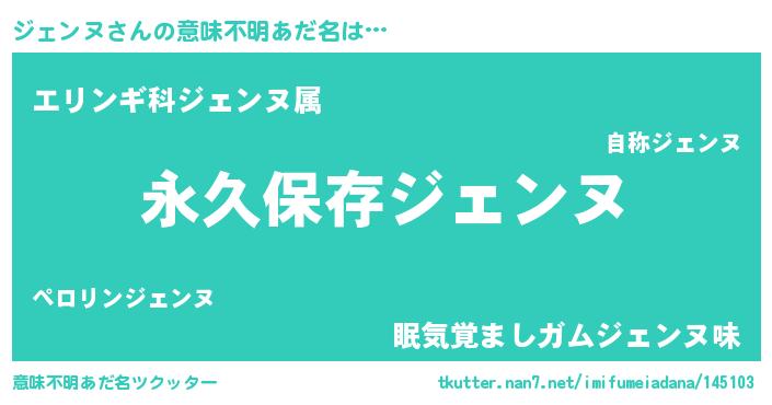 | 女子向けラノベタイトル風あだ名 | 『ジェンヌの契約王妃』『ジェンヌ恋絵巻』 |