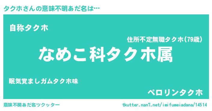 | ヘコむあだ名 | 『タクっふぃ~』『つくし』『タクを』 |
