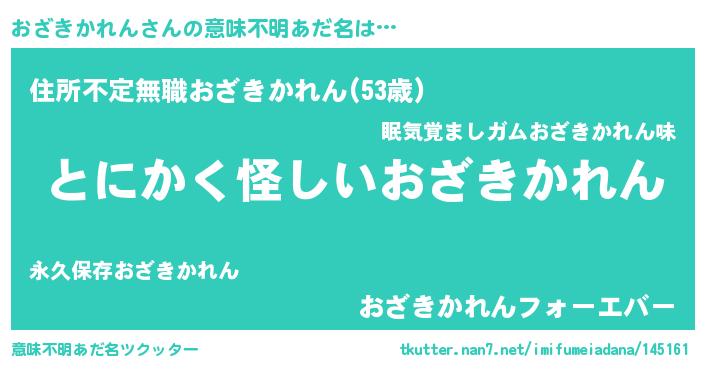 | 男性向けラノベタイトル風あだ名 | 『おざきかれんの嫁は女の子じゃないと思った?』 |