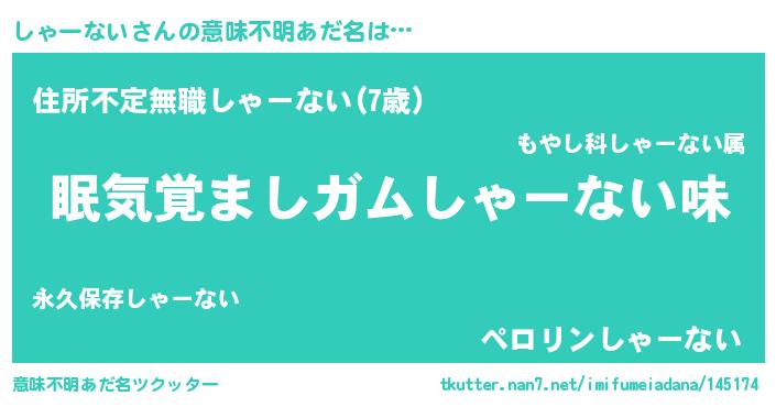 | 男性向けラノベタイトル風あだ名 | 『ノーゲーム・ノーシャーナイ』 |
