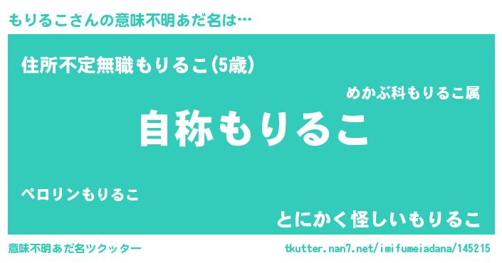 | 男性向けラノベタイトル風あだ名 | 『もりるこに滅ぼされるだけの簡単なお仕事です』 |
