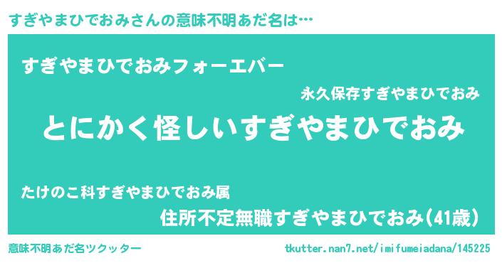 | 欧米人風あだ名 | 『すぎやまひでおみ・ステッグマイヤー』 |