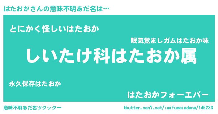 | ヘコむあだ名 | 『はたを』『つくし』『はたおか(笑)』 |