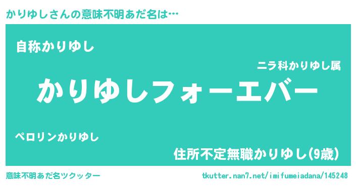 | ファンタジー風あだ名 | 『エターナルカリユシー』『ゼカリトゥ』 |