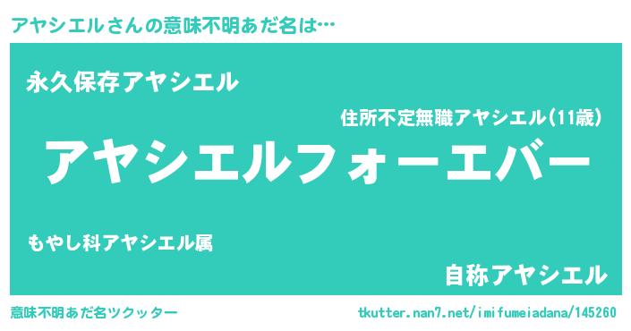 | 男性向けラノベタイトル風あだ名 | 『やはりアヤシエルの青春ラブコメはまちがっている 』 |