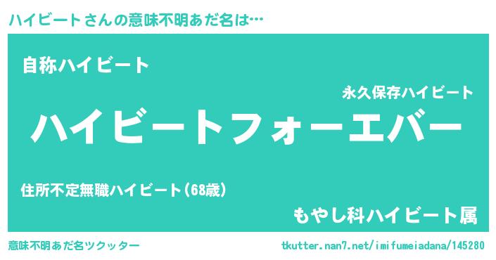 | ファンタジー風あだ名 | 『エターナルハイビートー』『ゼハイトゥ』 |