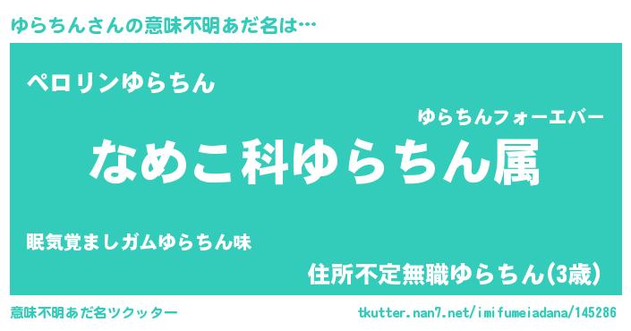 | 男性向けラノベタイトル風あだ名 | 『転生したらゆらちんだった件』 |