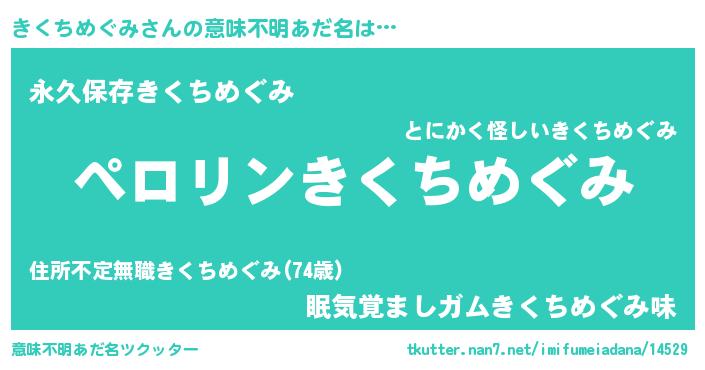 | 胡散臭い通販商品みたいなあだ名 | 『億万長者になれるブレスレット…その名も「きくちめぐみ」』 |