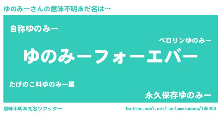 | 男性向けラノベタイトル風あだ名 | 『うちの娘の為ならば、俺はもしかしたらゆのみーも倒せるかもしれない。』 |