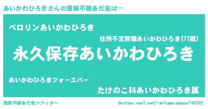 | ヘコむあだ名 | 『あいかわひろき(苦笑)』『あいにゅー』 |