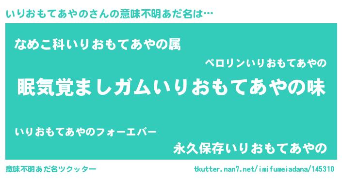 | 胡散臭い通販商品みたいなあだ名 | 『お金では代えられないイリジウム磁石…その名も「いりおもてあやの」』 |