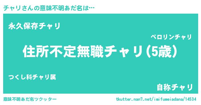 | 胡散臭い通販商品みたいなあだ名 | 『あなたにだけ特別に提供する100年もののヴィンテージワイン…その名も「チャリ」』 |