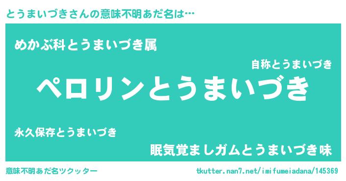 | 胡散臭い通販商品みたいなあだ名 | 『億万長者になれる霊験あらたかなお札…その名も「とうまいづき」』 |