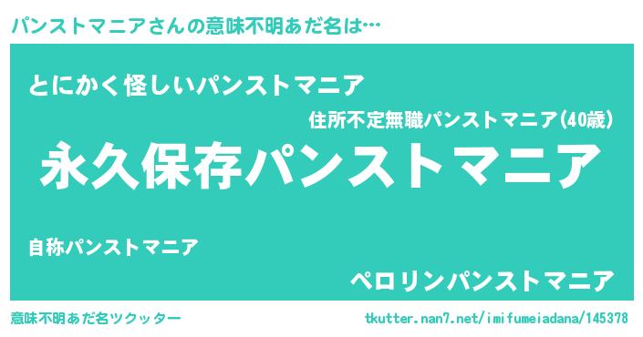 | 胡散臭い通販商品みたいなあだ名 | 『来世でも幸せになれる健康食品…その名も「パンストマニア」』 |