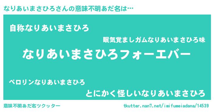 | 男性向けラノベタイトル風あだ名 | 『やはりなりあいまさひろの青春ラブコメはまちがっている 』 |