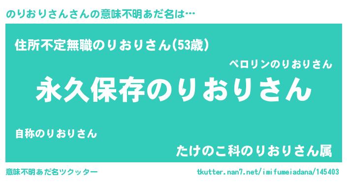 | 男性向けラノベタイトル風あだ名 | 『はたらくのりおりさんさま!』 |