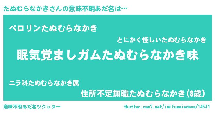 | 男性向けラノベタイトル風あだ名 | 『ノーゲーム・ノータヌムラナカキ』 |