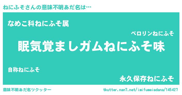 | ヘコむあだ名 | 『ねにふそ(震え声)』『ねにふぇ~』 |
