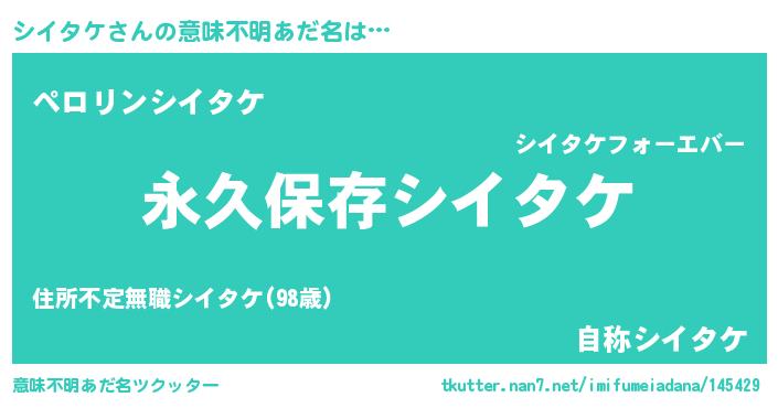 | 男性向けラノベタイトル風あだ名 | 『シイタケという概念が存在しない退屈な世界 』 |