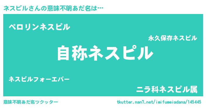 | 男性向けラノベタイトル風あだ名 | 『Re:ネスピルから始める異世界生活』 |