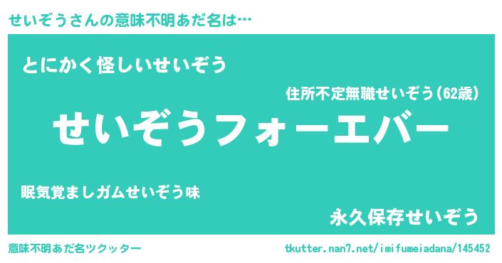 | ポケモン風あだ名 | 『セイゾダネ』『ヒセイゾウ』 |
