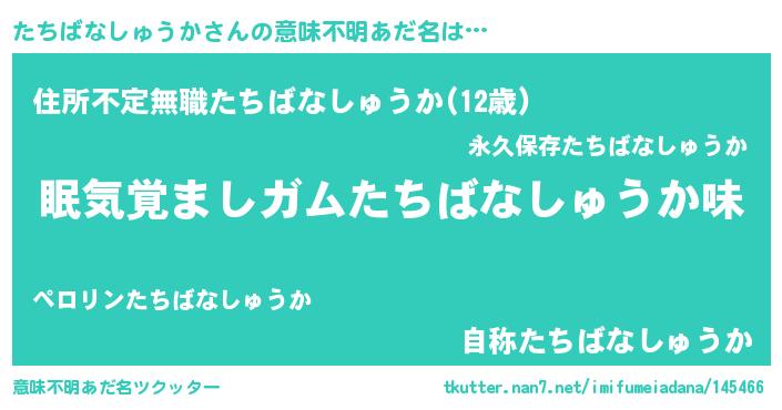| ヘコむあだ名 | 『たちばなしゅうか(遠い目)』『たちふぇ~』 |