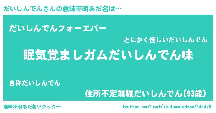 | 胡散臭い通販商品みたいなあだ名 | 『100人中100人が認めたマグネット磁石…その名も「だいしんでん」』 |