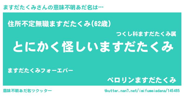 | 男性向けラノベタイトル風あだ名 | 『ダンジョンにますだたくみを求めるのは間違っているだろうか』 |