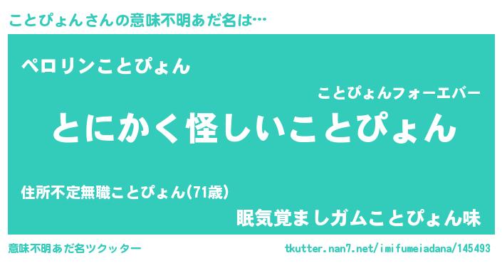 | 男性向けラノベタイトル風あだ名 | 『ことぴょんの嫁は女の子じゃないと思った?』 |