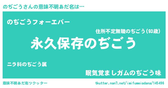 | 男性向けラノベタイトル風あだ名 | 『のぢごうという概念が存在しない退屈な世界 』 |