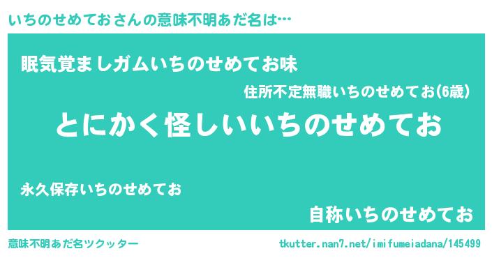 | 胡散臭い通販商品みたいなあだ名 | 『伝統あるサプリメント…その名も「いちのせめてお」』 |