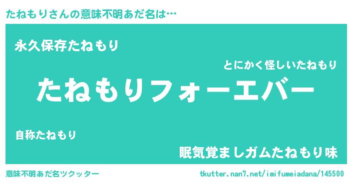| ファンタジー風あだ名 | 『エターナルタネモリー』『クインタット』 |