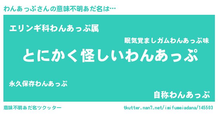 | 胡散臭い通販商品みたいなあだ名 | 『全米が絶賛したサプリメント…その名も「わんあっぷ」』 |