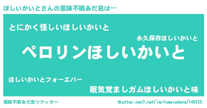 | 男性向けラノベタイトル風あだ名 | 『ほしいかいとの憂鬱』 |