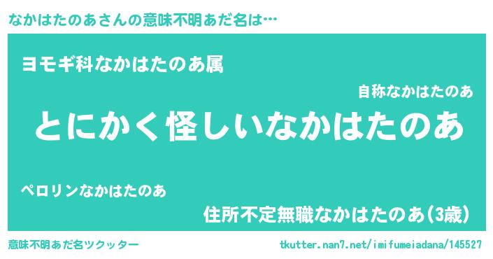 | ポケモン風あだ名 | 『ヒナカハタノア』『ナカキング』 |