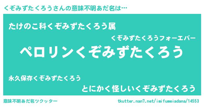 | ヒーロー風カッコイイあだ名 | 『スーパークゾミズタクロウ』 |