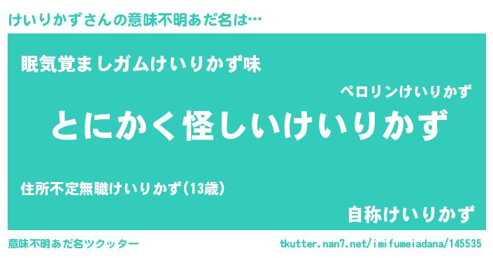 | 欧米人風あだ名 | 『けいりかず・ステッグマイヤー』 |